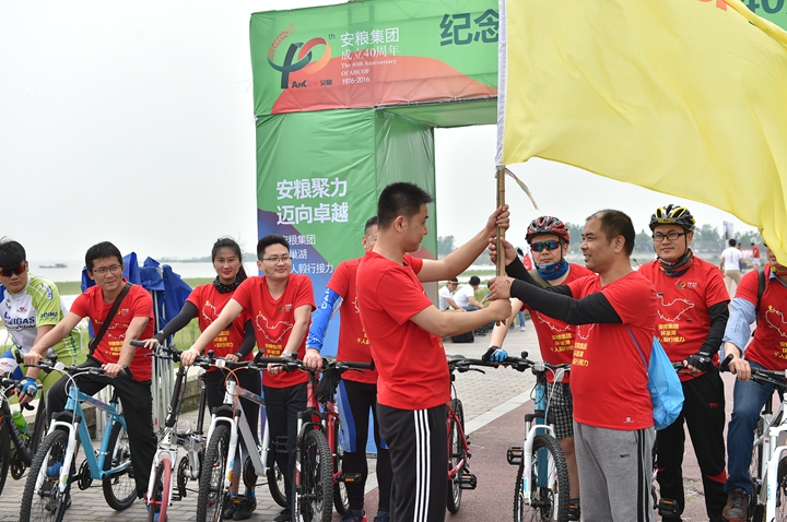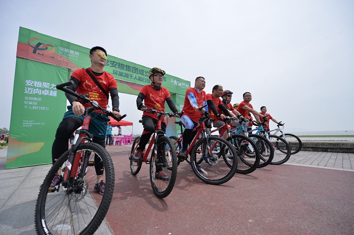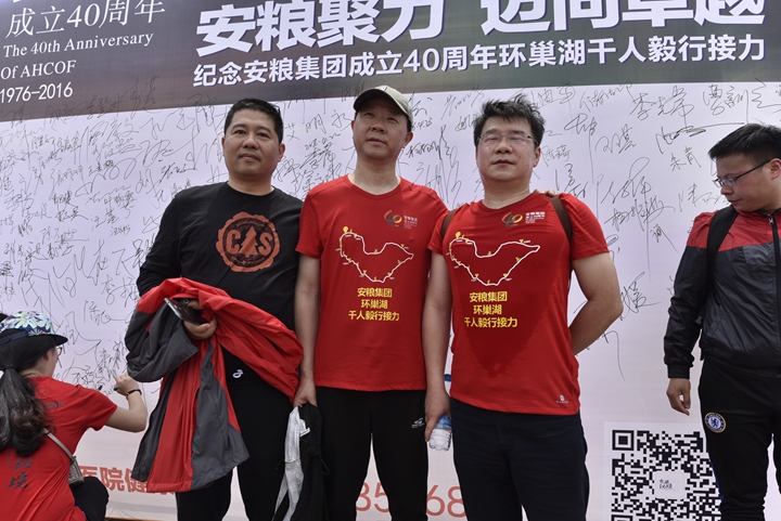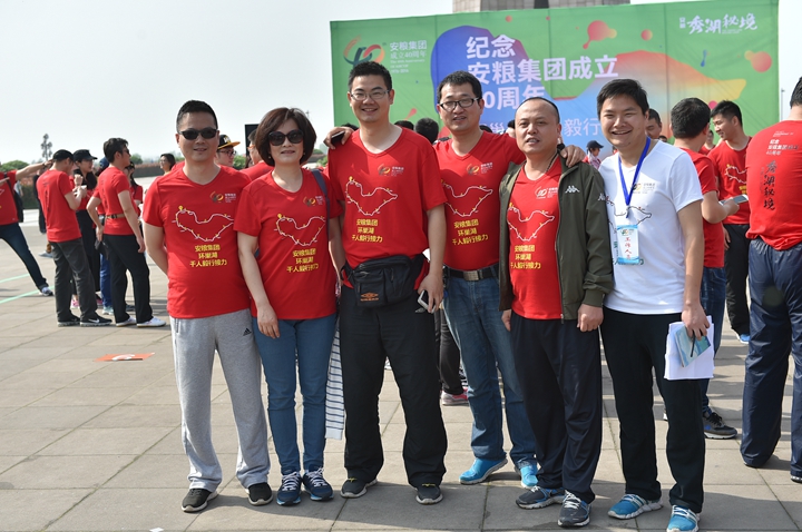 為慶祝安糧集團(tuán)成立40周年,2016年4月22-23日,為期兩天、歷程160公里的安糧集團(tuán)環(huán)巢湖千人毅行接力活動(dòng)在美麗的巢湖之濱熱情上演。本次活動(dòng)以“安糧聚力,邁向卓越”為主題,共有近千人參與,不僅有公司系統(tǒng)在職員工和退休老領(lǐng)導(dǎo)、老同志,國(guó)貿(mào)集團(tuán)范陽(yáng)董事長(zhǎng)還帶領(lǐng)國(guó)貿(mào)集團(tuán)的20多名同仁前來(lái)助陣。