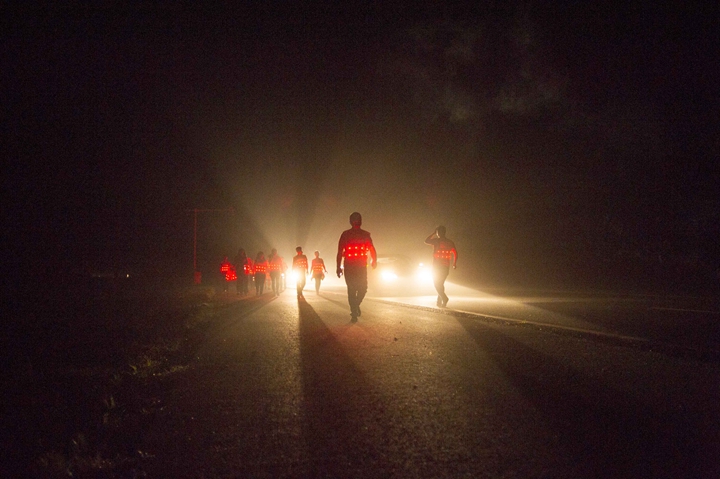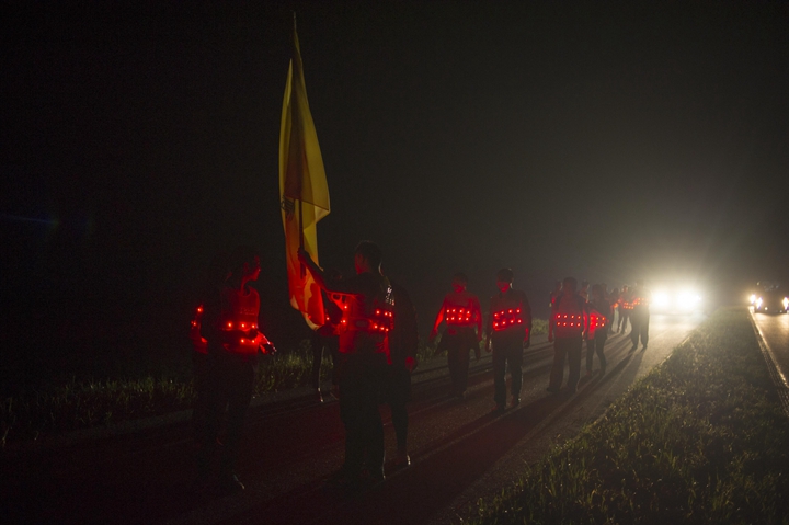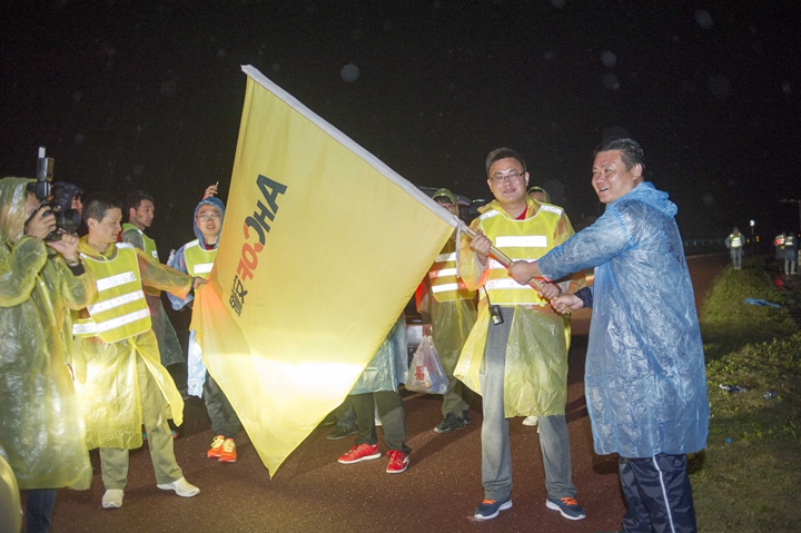 活動(dòng)分徒步、騎行兩個(gè)項(xiàng)目,以濱湖新區(qū)渡江戰(zhàn)役紀(jì)念館為起訖點(diǎn),自西向東、環(huán)巢而行,沿途先后歷經(jīng)肥東縣、巢湖市、廬江縣、肥西縣、濱湖新區(qū)。第一階段徒步毅行由解放碑出發(fā),行程10公里,參與人數(shù)700余人,12點(diǎn)前后陸續(xù)抵達(dá)半島碼頭接力點(diǎn)。第二階段全程150公里,由兩支自行車騎行大隊(duì)與四支徒步大隊(duì)組成。在第一階段隊(duì)伍全部抵達(dá)后,第二階段隊(duì)伍中午12:30騎行隊(duì)伍出發(fā),按照45km/棒開(kāi)始接力。22日晚7時(shí)許,騎行隊(duì)伍抵達(dá)預(yù)定地點(diǎn)。19:30,徒步隊(duì)伍接力開(kāi)始出發(fā),挑戰(zhàn)夜行,每15公里交接一棒。22日夜的巢湖岸邊,夜黑如墨,風(fēng)大雨急,氣溫驟降,四組徒步隊(duì)員們頂風(fēng)冒雨,不畏艱難、相攜相伴,堅(jiān)毅前行,如時(shí)完成!