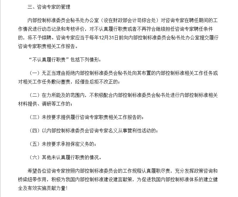 《關(guān)于印發(fā)內(nèi)部控制標(biāo)準(zhǔn)委員會(huì)咨詢(xún)專(zhuān)家名單的通知》 http://kjs.mof.gov.cn/zhengwuxinxi/gongzuotongzhi/201702/t20170215_2535525.html