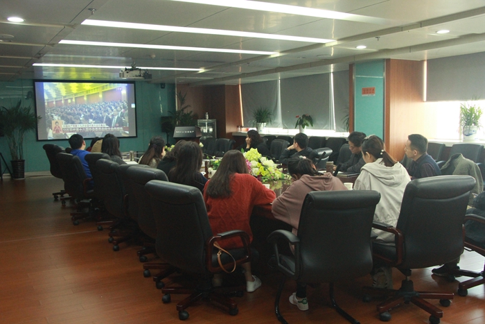 最后會(huì)議又繼續(xù)組織觀看了黨的十九大開(kāi)幕式回放。