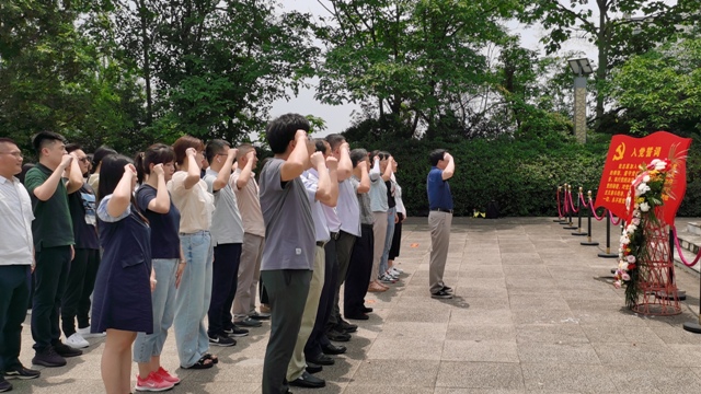 大家隨后來到紀(jì)念塔緬懷先烈、敬獻(xiàn)花籃。同志們面向黨旗,重溫入黨誓詞。嘹亮的誓言久久回響,深深地埋在每一位黨員的心中。