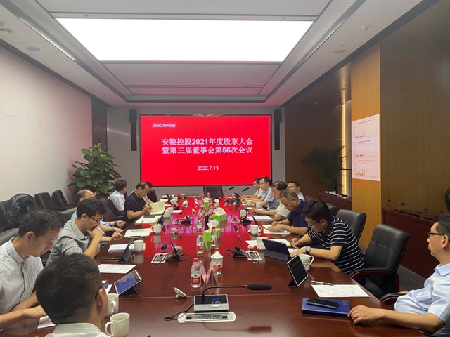 7月13日,安糧控股在安糧中心一號(hào)樓3208會(huì)議室召開2021年度股東大會(huì)暨第三屆董事會(huì)第56次會(huì)議,股東代表、董事會(huì)、監(jiān)事會(huì)及經(jīng)營(yíng)層成員參加會(huì)議。會(huì)議由曹訓(xùn)立董事長(zhǎng)主持。