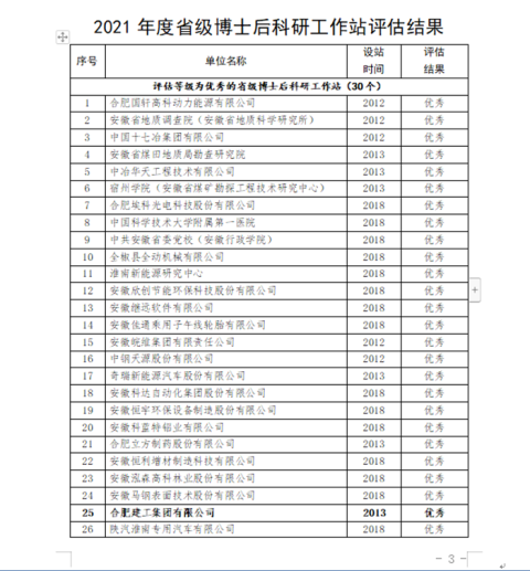 為加強博士后科研工作站建設(shè),推動博士后事業(yè)科學(xué)健康發(fā)展,安徽省人社廳對全省108家2021年度設(shè)站滿3年和首次評估滿5年的省級博士后科研工作站進行了綜合評估。最終,合肥建工博士后科研工作站等30家單位獲省優(yōu)稱號。