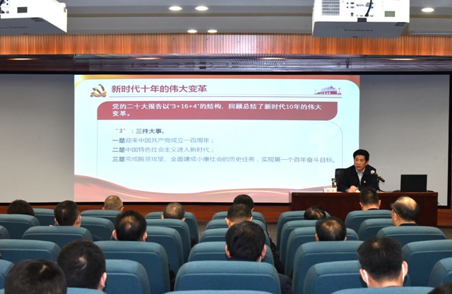 楊軍為安徽國貿黨員領導干部作了“深刻領會豐富內涵 踔厲奮發(fā)邁向新征程 深入學習宣傳貫徹黨的二十大精神”主題宣講。