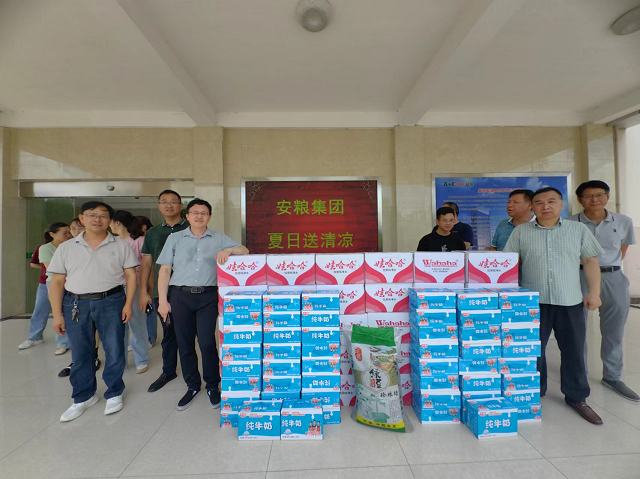 入夏以來(lái),安徽多地開(kāi)啟高溫模式,安糧實(shí)業(yè)于7-8月開(kāi)展了“夏日送清涼”活動(dòng),慰問(wèn)下屬工廠(chǎng)奮斗在一線(xiàn)的員工們,將防暑降溫物資送到基層員工手中,為高溫酷暑下堅(jiān)守生產(chǎn)一線(xiàn)的員工撐起“遮陽(yáng)傘”。