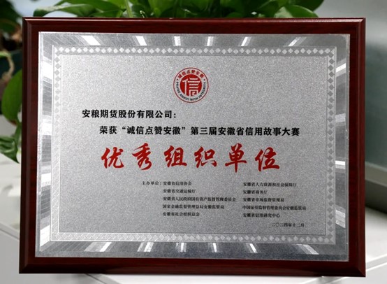 安糧期貨在“誠信點贊安徽”第三屆 徽省信用故事大賽中榮獲佳績