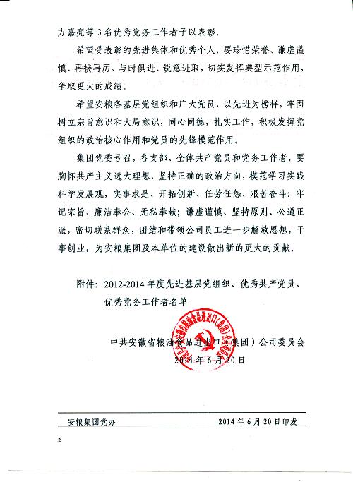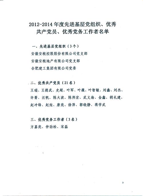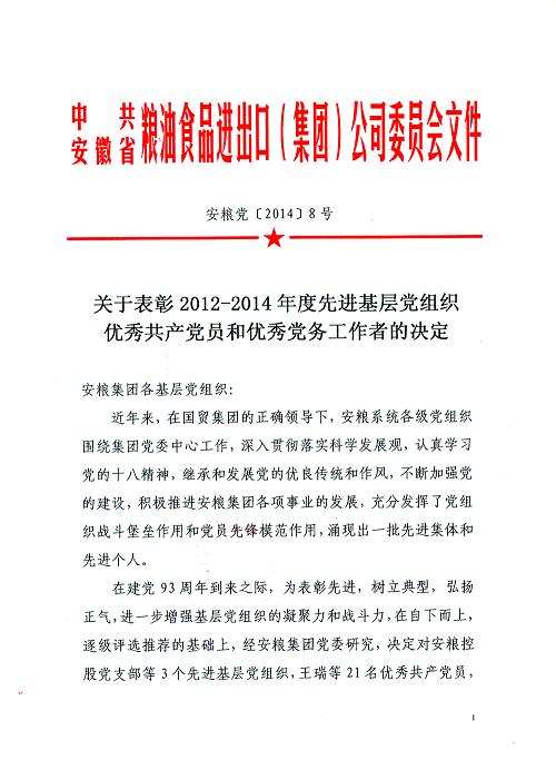 關于表彰2012-2014年度先進基層黨組織 優(yōu)秀共產(chǎn)黨員 優(yōu)秀黨務工作者的決定