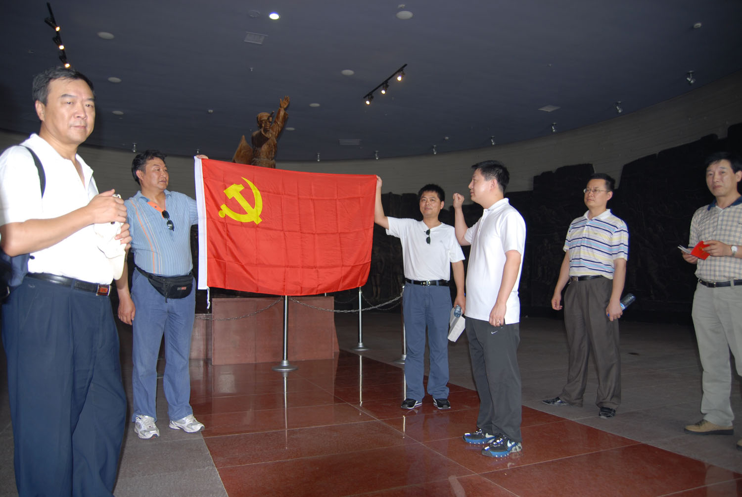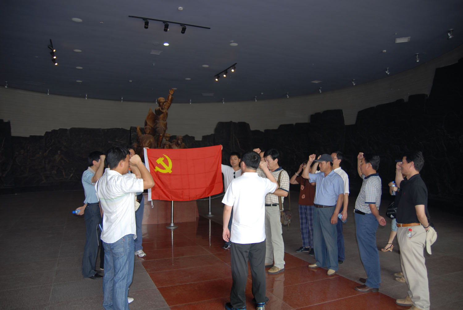 最后在淮海戰(zhàn)役紀(jì)念館前,預(yù)備黨員面隊(duì)著中國共產(chǎn)黨黨旗,緊握右拳,舉起手臂進(jìn)行了莊嚴(yán)的入黨宣誓,老黨員重溫入黨誓詞。不少同志拍下了許多照片來紀(jì)念這次有意義的活動,最后全體黨員同志在淮海戰(zhàn)役紀(jì)念碑前合影以留念。