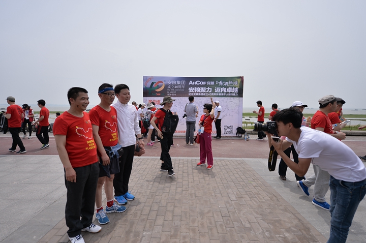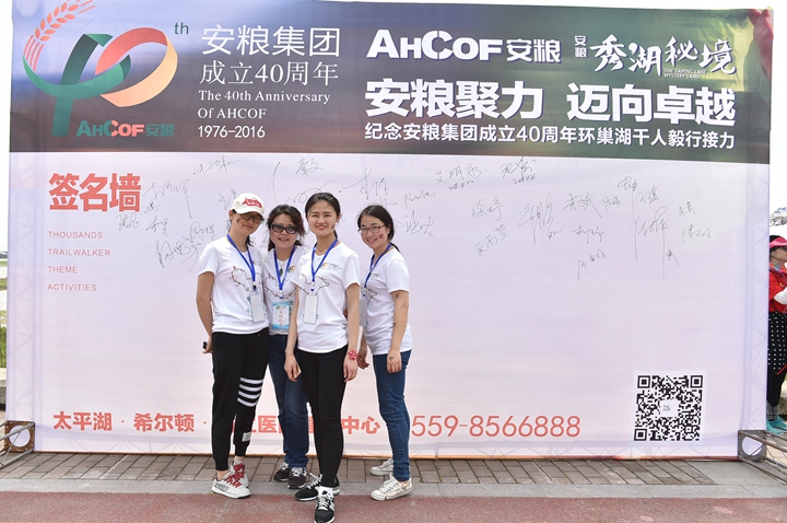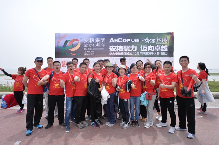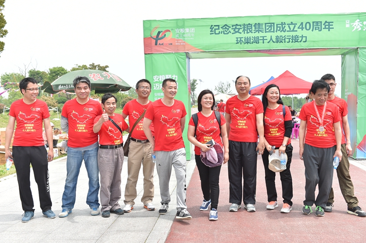 為慶祝安糧集團(tuán)成立40周年,2016年4月22-23日,為期兩天、歷程160公里的安糧集團(tuán)環(huán)巢湖千人毅行接力活動(dòng)在美麗的巢湖之濱熱情上演。本次活動(dòng)以“安糧聚力,邁向卓越”為主題,共有近千人參與,不僅有公司系統(tǒng)在職員工和退休老領(lǐng)導(dǎo)、老同志,國(guó)貿(mào)集團(tuán)范陽(yáng)董事長(zhǎng)還帶領(lǐng)國(guó)貿(mào)集團(tuán)的20多名同仁前來(lái)助陣。