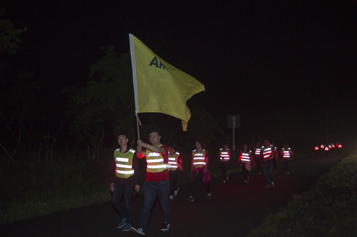 頂烈日出發(fā),迎風(fēng)雨歸來(lái), 不經(jīng)歷風(fēng)雨,怎能見(jiàn)彩虹!本次活動(dòng)旨在通過(guò)比拼耐力、團(tuán)隊(duì)協(xié)作的戶外青春毅行方式,感懷安糧集團(tuán)四十年艱苦發(fā)展歷程,詮釋和回顧安糧集團(tuán)四十年坎坷發(fā)展之路!毅行隊(duì)伍匯聚成一股紅色浪潮,浩浩蕩蕩,與春潮共涌,隨鷗鷺爭(zhēng)翔。或漫步,或疾走,徒步者三五相攜,騎行者如離弦之箭。追憶往昔,暢想未來(lái),個(gè)個(gè)喜笑顏開(kāi),人人意氣風(fēng)發(fā)。披朝露,追夕照,抵烈日,沐風(fēng)雨。攜手前行有春光作伴,夜幕沉沉我們從不孤獨(dú),火熱的太陽(yáng)燃燒出安糧人的激情,突來(lái)的風(fēng)雨洗禮出我們的團(tuán)結(jié)和堅(jiān)毅。毅行隊(duì)伍一路向前,徒步騎行從容接力,通過(guò)24小時(shí)的一路堅(jiān)持,穿過(guò)環(huán)巢一市三縣,不斷向目標(biāo)邁進(jìn),向勝利進(jìn)發(fā)!