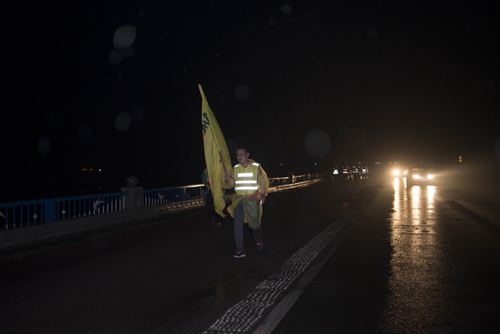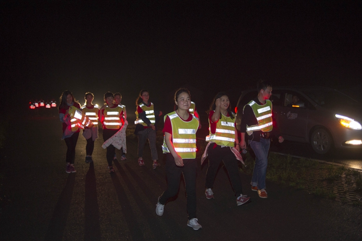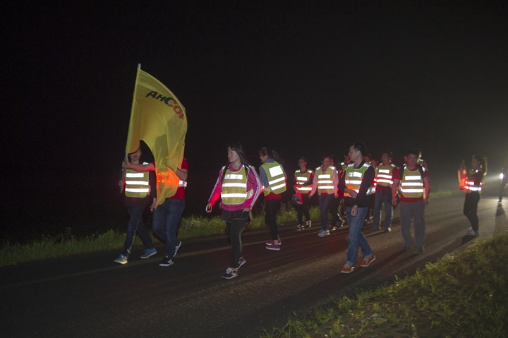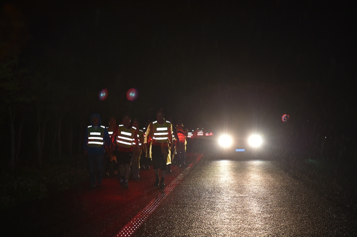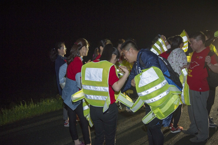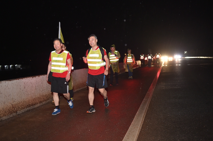 活動(dòng)分徒步、騎行兩個(gè)項(xiàng)目,以濱湖新區(qū)渡江戰(zhàn)役紀(jì)念館為起訖點(diǎn),自西向東、環(huán)巢而行,沿途先后歷經(jīng)肥東縣、巢湖市、廬江縣、肥西縣、濱湖新區(qū)。第一階段徒步毅行由解放碑出發(fā),行程10公里,參與人數(shù)700余人,12點(diǎn)前后陸續(xù)抵達(dá)半島碼頭接力點(diǎn)。第二階段全程150公里,由兩支自行車騎行大隊(duì)與四支徒步大隊(duì)組成。在第一階段隊(duì)伍全部抵達(dá)后,第二階段隊(duì)伍中午12:30騎行隊(duì)伍出發(fā),按照45km/棒開(kāi)始接力。22日晚7時(shí)許,騎行隊(duì)伍抵達(dá)預(yù)定地點(diǎn)。19:30,徒步隊(duì)伍接力開(kāi)始出發(fā),挑戰(zhàn)夜行,每15公里交接一棒。22日夜的巢湖岸邊,夜黑如墨,風(fēng)大雨急,氣溫驟降,四組徒步隊(duì)員們頂風(fēng)冒雨,不畏艱難、相攜相伴,堅(jiān)毅前行,如時(shí)完成!