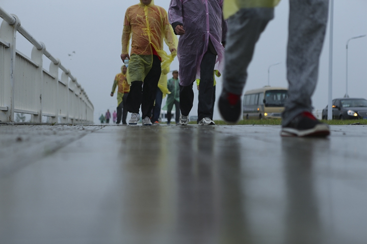 23日風(fēng)雨交加的清晨,公司領(lǐng)導(dǎo)班子抵達(dá)最后一階段起點(diǎn),與徒步隊(duì)伍一起向目的地發(fā)起沖刺!9:30,最后一只徒步隊(duì)伍沖出雨幕,勝利抵達(dá)紀(jì)念碑終點(diǎn)站。