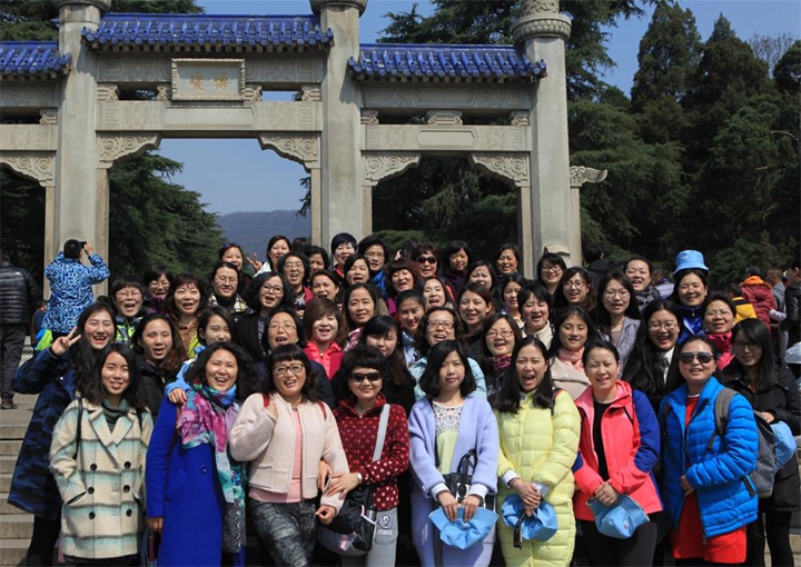 本次活動(dòng)的第一站來到南京最著名的旅游景點(diǎn)——中山陵景區(qū)。3月12日正是中山先生的忌日,前來中山陵園祭拜的游客很多。女職工們登上392級(jí)的石階,到達(dá)中山先生祭堂,瞻仰中山先生的雕像,緬懷這位開拓民主革命的偉人。