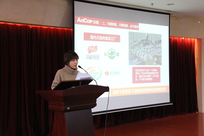 安糧實(shí)業(yè)肉禽三部經(jīng)理劉玉蓮作交流發(fā)言