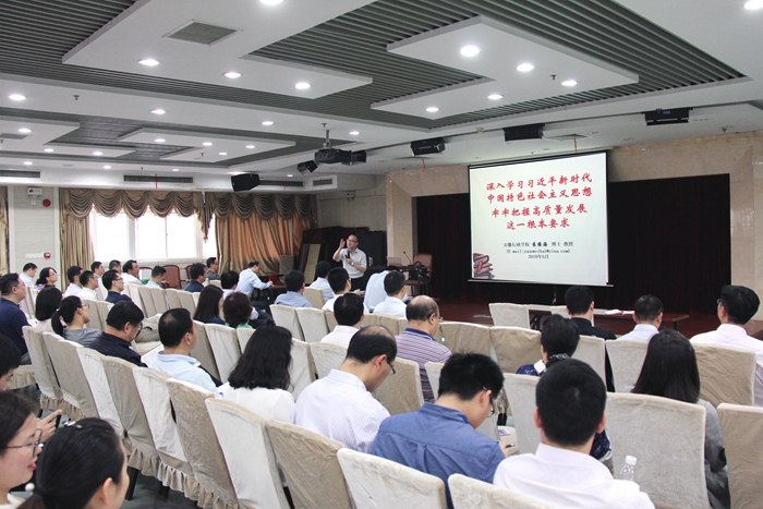 為深入學(xué)習(xí)黨的十九大精神,貫徹落實(shí)習(xí)近平新時(shí)代中國(guó)特色社會(huì)主義思想,5月25日下午,集團(tuán)黨委舉辦題為《深入學(xué)習(xí)習(xí)近平新時(shí)代中國(guó)特色社會(huì)主義思想 牢牢把握高質(zhì)量發(fā)展這一根本要求》宣講報(bào)告會(huì)。安糧集團(tuán)黨委、紀(jì)委成員,合肥建工黨委、紀(jì)委成員,各基層黨支部支委,各單位黨務(wù)、紀(jì)檢及部分中層干部、黨員共180余人參加學(xué)習(xí)。會(huì)議由集團(tuán)黨委委員曹訓(xùn)立同志主持,集團(tuán)黨委副書記、總裁方宗友等有關(guān)領(lǐng)導(dǎo)參加報(bào)告會(huì)。