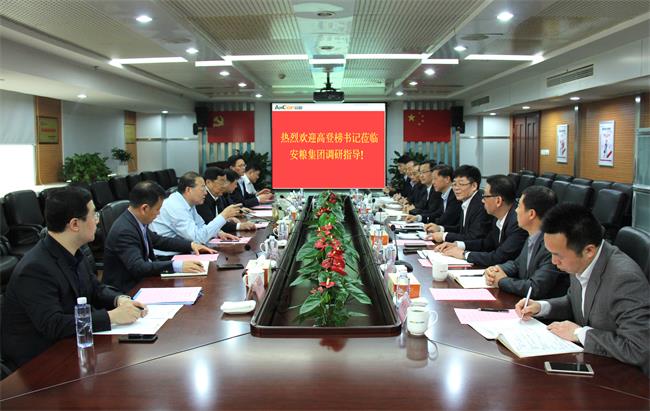 2019年5月9日,海螺集團(tuán)黨委書記、董事長(zhǎng)高登榜在國(guó)貿(mào)集團(tuán)黨委書記、董事長(zhǎng)范陽陪同下,來公司調(diào)研指導(dǎo),同行的還有海螺集團(tuán)黨委委員、紀(jì)委書記吳小明,副總經(jīng)濟(jì)師、董辦主任周小川,組織人事部部長(zhǎng)汪純健等。安糧集團(tuán)黨委書記、董事長(zhǎng)曹訓(xùn)立率集團(tuán)(控股)領(lǐng)導(dǎo)班子全體成員參加調(diào)研座談。