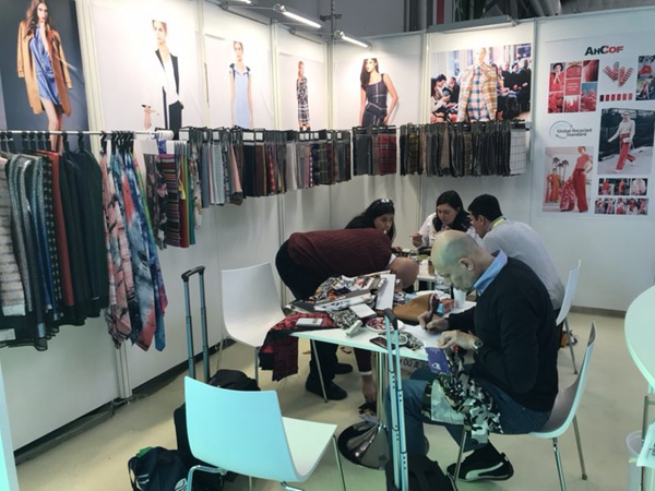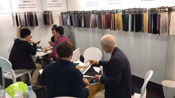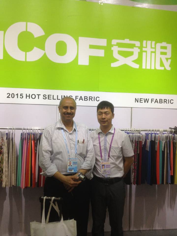 去過廣交會(huì)的同事們都知道,廣交會(huì)每天的參展任務(wù)是異常繁忙且辛苦的。5月1日國際勞動(dòng)節(jié),也是廣交會(huì)三期開展的第一天,位于15.4號(hào)館主通道旁邊的安糧紡織品展位人流如織,云集的客商都被展位上精心挑選、花樣繁多的樣品所吸引。面料中晶晶閃閃的亮片、時(shí)尚FASHION的提花剪花格外受到客人們的青睞,單朋朋和同事們身邊圍滿了膚色各異的外國客商,他們既熱情又耐心地與每一位客商溝通,介紹產(chǎn)品信息、核算價(jià)格并及時(shí)登記記錄,便于展會(huì)后的持續(xù)跟進(jìn),展位上一片熱火朝天。