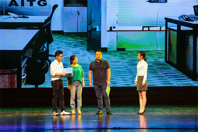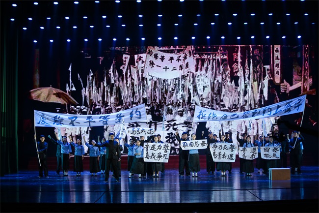 情景劇《使命的接力》分為四個篇章,前三個篇章以五四運動、抗日戰(zhàn)爭、新中國成立以及改革開放等重要時間節(jié)點為背景,節(jié)選具有鮮明時代烙印的畫面,講述了一百年來中國人民的民族氣節(jié)和不屈不饒的奮斗歷程;最后一個篇章則回歸到當下外貿工作中的一個真實場景,描述了新時代國貿人接過前輩的接力棒,不忘初心、牢記使命,在一次次的磨礪中不斷成長,立志為中華民族偉大復興貢獻力量的動人故事。