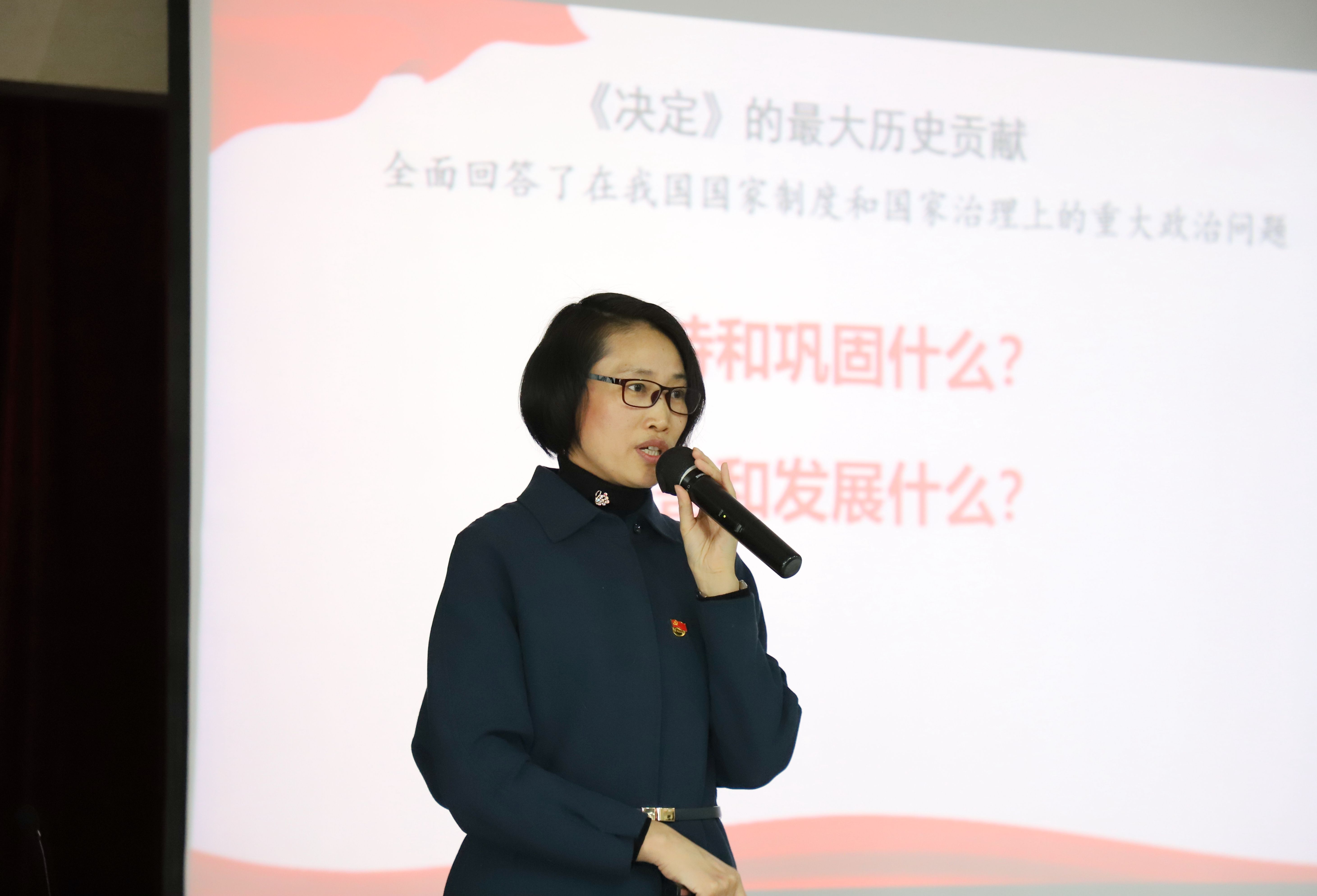 在兩個多小時的宣講中,吳教授圍繞“充分認識四中全會的重大意義”“堅定中國特色社會主義制度自信”“準確把握總體要求、總體目標和重點任務(wù)”“切實把制度優(yōu)勢轉(zhuǎn)化為治理效能”四大章節(jié),帶領(lǐng)大家回顧了十八大以來歷次中央全會的主題與鮮明特點,用十三個方面的“顯著優(yōu)勢”、十三個“堅持與完善”、三個“突出”、四大“亮點”,深刻闡釋了全會召開的重大意義,深入闡述了中國特色社會主義制度和國家治理體系的優(yōu)勢和實踐成果,以及《決定》的重大歷史貢獻。