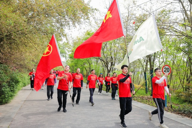 桃李爭妍、山河錦繡,500名安糧員工在鮮紅的黨旗引領下,身著印有黨史學習教育主題LOGO的統(tǒng)一服裝,飽含初心與熱忱,懷揣夢想與希望,一步一個腳印,用鏗鏘的步伐丈量7.1公里的毅行之路;一站一站接力,用掃碼答題的方式回首百年黨史之路;一路攜手同行,用笑聲點綴山林,用自信和堅持點亮追夢之路,闊步踏上奮進“十四五”、推動高質量發(fā)展的新征程。