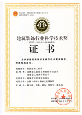 自2019年評(píng)選以來,公司申報(bào)的“安徽(中國)桐城文化博物館”項(xiàng)目斬獲科技創(chuàng)新工程獎(jiǎng)一項(xiàng),總結(jié)形成的施工技術(shù)成果“不規(guī)則立面齒條型GRC幕墻施工技術(shù)”獲得科技創(chuàng)新成果獎(jiǎng)一項(xiàng),走在安徽省內(nèi)裝飾行業(yè)的前沿。之后相繼獲得兩項(xiàng)科技創(chuàng)新工程獎(jiǎng):合肥市第六十八中學(xué)改擴(kuò)建項(xiàng)目-綜合樓工程,六安市兒童醫(yī)院、金安區(qū)婦幼保健院醫(yī)療病房綜合樓裝飾裝修工程;兩項(xiàng)科技創(chuàng)新成果獎(jiǎng):“一種可開啟180度的裝飾消火栓暗門”,“ 基于3D建模技術(shù)高支模結(jié)構(gòu)與裝飾結(jié)構(gòu)共用盤扣腳手架安裝技術(shù)”。其中“一種可開啟180度的裝飾消火栓暗門”科技創(chuàng)新成果更是獲得一等獎(jiǎng)的好成績。