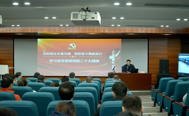 何汝才書(shū)記為安糧國(guó)際50余名黨員作了“深刻領(lǐng)會(huì)豐富內(nèi)涵 團(tuán)結(jié)奮斗勇毅前行——學(xué)習(xí)宣傳貫徹黨的二十大精神”主題宣講。 他從深刻領(lǐng)會(huì)黨的二十大會(huì)議的重要意義、精神實(shí)質(zhì)、弘揚(yáng)偉大建黨精神、深刻領(lǐng)會(huì)以中國(guó)式現(xiàn)代化推進(jìn)中華民族偉大復(fù)興的歷史重任等四個(gè)方面系統(tǒng)、深入地解讀了黨的二十大精神重大意義、主題內(nèi)涵及核心內(nèi)容,并結(jié)合海螺集團(tuán)、安徽國(guó)貿(mào)的發(fā)展對(duì)所有黨員干部作出要求。他強(qiáng)調(diào),學(xué)習(xí)宣傳貫徹黨的二十大精神是公司當(dāng)前和今后一個(gè)時(shí)期的重大政治任務(wù),要深刻領(lǐng)會(huì)黨的二十大報(bào)告對(duì)堅(jiān)定不移全面從嚴(yán)治黨、深入推進(jìn)新時(shí)代黨的建設(shè)偉大工程作出的重要部署;要堅(jiān)持學(xué)思用貫通,聚焦主責(zé)主業(yè),堅(jiān)持高質(zhì)量發(fā)展,切實(shí)把黨的二十大精神落實(shí)到各項(xiàng)具體工作和實(shí)際行動(dòng)中,展現(xiàn)更大擔(dān)當(dāng)作為,為海螺集團(tuán)“爭(zhēng)創(chuàng)世界一流企業(yè)”貢獻(xiàn)更大力量。