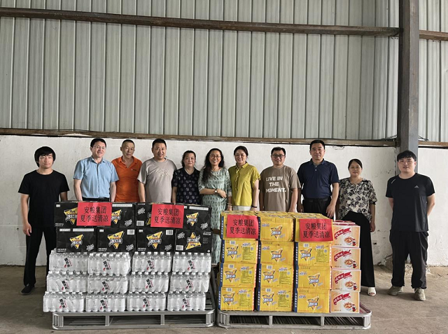 入夏以來(lái),安徽多地開(kāi)啟高溫模式,安糧實(shí)業(yè)于7-8月開(kāi)展了“夏日送清涼”活動(dòng),慰問(wèn)下屬工廠(chǎng)奮斗在一線(xiàn)的員工們,將防暑降溫物資送到基層員工手中,為高溫酷暑下堅(jiān)守生產(chǎn)一線(xiàn)的員工撐起“遮陽(yáng)傘”。