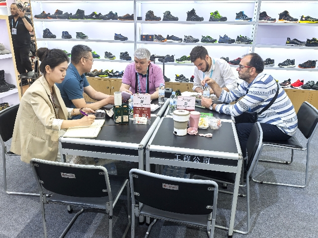 鞋類展區(qū)以“創(chuàng)新科技,時(shí)尚出行”為主題,集中呈現(xiàn)了運(yùn)動(dòng)休閑、戶外功能等多類產(chǎn)品。主打的輕便安全鞋采用先進(jìn)的減震與防護(hù)技術(shù),兼具輕量化與高強(qiáng)度特性,獲得歐美客戶的高度認(rèn)可,開展首日就迎來(lái)大量客戶詢價(jià)洽談;使用環(huán)保耐磨材料制成的雪地靴,憑借出色的保暖與防滑優(yōu)勢(shì),成為北歐市場(chǎng)的潛力爆品。